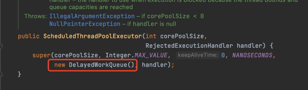在提交延迟任务的时候,任务会被封装一个任务会被封装成ScheduledFutureTask对象,然后放到DelayedWorkQueue阻塞队列中。 ScheduledFutureTask