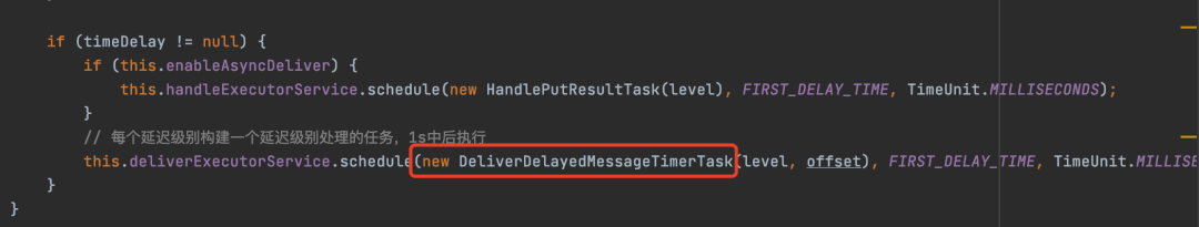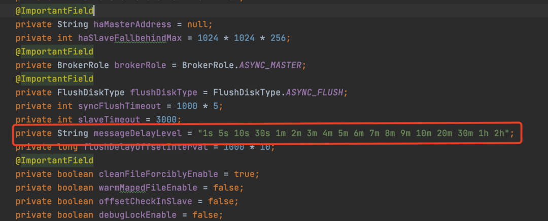ScheduledFutureTask实现了前面提到的Delayed接口,所以其实可以猜到DelayedWorkQueue会根据ScheduledFutureTask对于Delayed接口的实现来排序,所以线程能够获取到最早到延迟时间的任务。 当线程从DelayedWorkQueue中获取到需要执行的任务之后就会执行任务。 RocketMQRocketMQ是阿里开源的一款消息中间件,实现了延迟消息的功能,如果有对RocketMQ不熟悉的小伙伴可以看一下我之前写的RocketMQ保姆级教程和RocketMQ消息短暂而又精彩的一生 这两篇文章。 RocketMQ延迟消息的延迟时间默认有18个等级。 图片