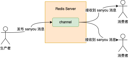 整个工作流程如下: 消息发送的时候会将消息发送到sanyouDirectExchange这个交换机上由于sanyouDirectExchange绑定了sanyouQueue,所以消息会被路由到sanyouQueue这个队列上由于sanyouQueue没有消费者消费消息,并且又设置了5s的过期时间,所以当消息过期之后,消息就被放到绑定的sanyouDelayTaskExchange死信交换机中消息到达sanyouDelayTaskExchange交换机后,由于跟sanyouDelayTaskQueue进行了绑定,所以消息就被路由到sanyouDelayTaskQueue中,消费者就能从sanyouDelayTaskQueue中拿到消息了上面说的队列与交换机的绑定关系,就是上面的配置类所干的事。 其实从这个单从消息流转的角度可以看出,RabbitMQ跟RocketMQ实现有相似之处。 消息最开始都并没有放到最终消费者消费的队列中,而都是放到一个中间队列中,等消息到了过期时间或者说是延迟时间,消息就会被放到最终的队列供消费者消息。 只不过RabbitMQ需要你显示的手动指定消息所在的中间队列,而RocketMQ是在内部已经做好了这块逻辑。 除了基于RabbitMQ的死信队列来做,RabbitMQ官方还提供了延时插件,也可以实现延迟消息的功能,这个插件的大致原理也跟上面说的一样,延时消息会被先保存在一个中间的地方,叫做Mnesia,然后有一个定时任务去查询最近需要被投递的消息,将其投递到目标队列中。 监听Redis过期key在Redis中,有个发布订阅的机制。 图片