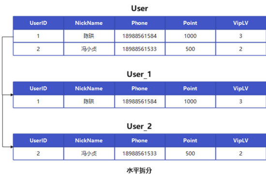 只要涉及到这个拆,那么无论是微服务也好,分库分表也好,拆分的方式主要分两种:垂直拆分、水平拆分。 垂直拆分更多是从业务角度进行拆分,主要是为了降低业务耦合度;此外以 SQL Server 为例,一页是 8KB 存储,如果在一张表里字段越多,一行数据自然占的空间就越大,那么一页数据所存储的行数就自然越少,那么每次查询所需要 IO 则越高因此性能自然也越慢。因此反之,减少字段也能很好提高性能。之前我听说某些同行的表有 80 个字段,几百万的数据就开始慢了。 水平拆分更多是从技术角度进行拆分,拆分后每张表的结构是一模一样的,简而言之就是把原有一张表的数据,通过技术手段进行分片到多张表存储,从根本上解决了数据量的问题。