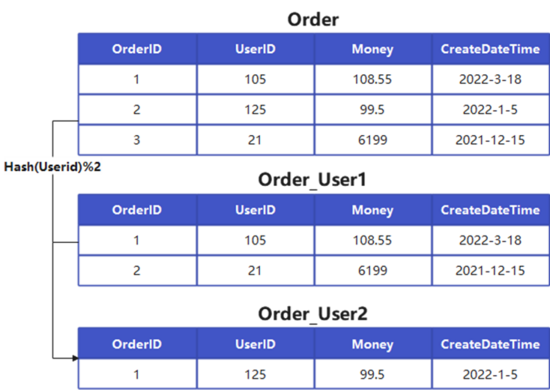 在数据库以序列化存储的方式,对于一些不需要结构化存储的业务来说是一种很好减少数据量的方式,特别是对于一些M*N的数据量的业务场景,如果以M作为主表优化,那么就可以把数据量维持最多是M的量级。另外像订单的地址信息,这种业务一般是不需要根据里面的字段检索出来,也比较适合。 这种方案我认为属于一种临时性的优化方案,无论是从序列化后丢失了部份字段的查询能力,还是这方案的可优化性都是有限的。 4)分库分表分库分表作为数据库优化的一种非常经典的优化方案,特别是在以前 NoSQL 还不是很成熟的年代,这个方案就如救命草一般的存在。 如今也有不少同行也会选择这种优化方式,但是从我角度来看,分库分表是一种优化成本很大的方案。 这里我有几个建议:分库分表是实在没有办法的办法,应放到最后选择。优先选择 NoSQL 代替,因为 NoSQL 诞生基本上为了扩展性与高性能。究竟分库还是分表?量大则分表,并发高则分库不考虑扩容,一部做到位。因为技术更新太快了,每 3-5 年一大变。① 拆分方式