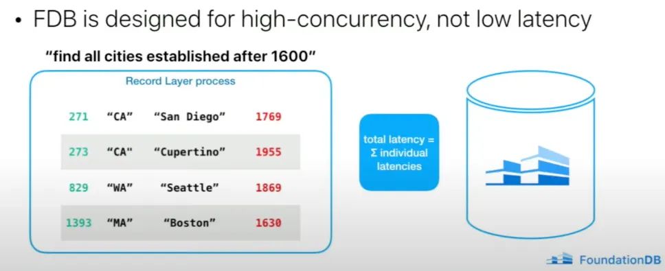 在CloudKit中,每个应用程序由一个遵循特定模式的“逻辑容器”来表示。这个模式详细定义了必要的记录类型、字段和索引,以实现高效的数据检索和查询功能。应用程序在CloudKit内部将其数据组织到不同的“区域”(zones)中,这样可以按逻辑分组记录,便于与客户端设备进行选择性同步。 对于每一位用户,CloudKit在FoundationDB中分配一个唯一的子空间。在这个子空间内,针对用户使用的所有应用程序,CloudKit都会为每个应用创建一个记录存储。换言之,CloudKit实际上管理着大量逻辑数据库——即用户数量乘以应用程序数量所得到的数量级,每一个都包含其自身的记录集、索引和元数据,总量高达数十亿个独立数据库。 当CloudKit接收到来自客户端设备的请求时,它会通过负载均衡机制将请求导向可用的CloudKit服务进程。该服务进程随后与Record Layer中的相应记录存储进行交互,以完成请求操作。 CloudKit将定义好的应用程序模式转换为Record Layer中的元数据定义,并将其存储在独立的元数据存储中。此外,CloudKit还会添加特定的系统字段来丰富这些元数据,如记录的创建时间、修改时间以及记录所在的区域信息。为了实现对每个区域内记录的有效访问,区域名称会被作为前缀附加到主键上。除了用户自定义的索引外,CloudKit还管理“系统索引”,例如为了管理存储配额而维护的一种根据记录类型追踪其大小的索引。 FoundationDB和Record Layer结合使用,共同解决了苹果面临的一些关键问题,这些问题单靠Cassandra或FoundationDB都无法完美解决。 六、已解决的问题1、个性化全文搜索 FoundationDB在解决用户个性化全文搜索,以快速访问其数据方面发挥了重要作用。苹果的系统利用了FoundationDB的键顺序特性,能够实现对文本开头(前缀匹配)进行快速搜索,并且无需额外开销即可处理更复杂的搜索需求,如查找相近词或特定顺序排列的词语(邻近搜索和短语搜索)。 在传统的搜索系统中,通常需要后台运行额外的进程来保持搜索索引的实时更新。而苹果的系统则实现了所有操作的实时性,这意味着一旦数据发生变化,搜索索引会立即得到更新,无需任何额外步骤。这种设计不仅提高了搜索效率,还确保了数据的一致性和时效性,为用户提供更为流畅、准确的搜索体验。 2、高并发区域 FoundationDB为CloudKit处理同时发生的大量更新提供了更为平滑和一致的方式。 在以前使用Cassandra时,CloudKit依赖于一个特殊的索引来追踪各个区域内的数据变化以实现跨设备同步。当设备需要更新数据时,会通过检查这个索引来获取最新信息。但这种方法存在一个问题:当多台设备几乎同时进行更新操作时,可能会引发冲突。 而采用FoundationDB后,CloudKit利用了一种特殊类型的索引,它可以精确地跟踪每一次更改的顺序,而且不会导致冲突。这种机制是通过为每次变更分配一个唯一的“版本号”来实现的,当CloudKit需要进行同步时,它会根据这些版本号来确定设备错过了哪些更新内容。 然而,在将数据从一个存储集群转移到另一个存储集群(可能是为了更均匀地分布负载)时,情况变得复杂起来,因为每个集群都有自己独立的、不匹配的版本号。为解决这一问题,CloudKit为每位用户的每份数据赋予了一个称为“化身”的“迁移计数”,每当用户的数据被迁移到新集群时,“化身”值就会递增。每个记录更新都会包含用户当前的“化身”号码,从而确保即使在迁移之后,CloudKit仍可以根据化身号和版本号来正确判断出更新的顺序。 当CloudKit切换到这个新系统时,面临的挑战之一是如何处理那些尚未带有版本号的老数据。他们巧妙地解决了这个问题,通过运用一种特殊函数,该函数可以先按照旧系统的方式对老的更新进行排序,然后再加入新系统的更新。这意味着无需对应用程序进行复杂的改动或遗留过时代码。此函数综合考虑了化身、版本以及旧的更新计数器值,确保了记录顺序的准确性。 3、高延迟查询 FoundationDB 是为高并发设计的,而非针对低延迟。这意味着它能够同时处理大量任务,而不是专注于单个任务的速度。 来源:《FoundationDB Record Layer: 开源结构化存储》