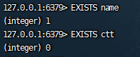 也可以使用TYPE命令。 复制127.0.0.1:6379> TYPE name1. 返回对应的类型(如,string)则说明key存在,返回“none”说明key不存在。