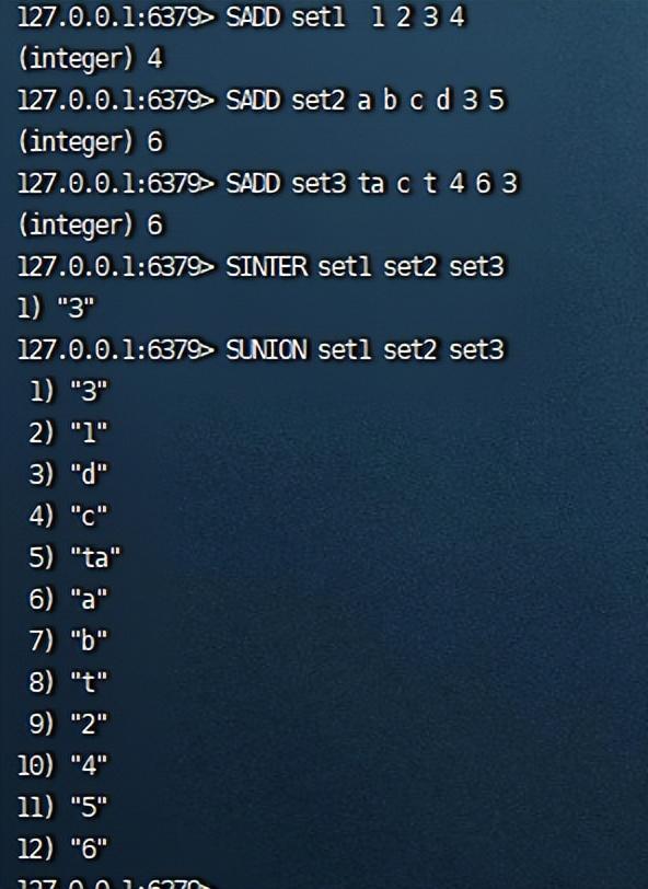 无序集合(set类型)操作Redis中的Set类型是一个无序的、不重复的字符串集合。下面是Redis中Set类型的常见操作: 1、向集合中添加元素要向集合中添加元素,请使用SADD命令。例如,要将值为“ctt”的元素添加到名为“myset”的集合中,可以执行以下操作: 复制127.0.0.1:6379> SADD myset ctt1.  2、获取集合中的元素数量要获取集合中的元素数量,请使用SCARD命令。例如,要获取名为“myset”的集合中的元素数量,可以执行以下操作: 复制127.0.0.1:6379> SCARD myset1.  3、获取集合中的所有元素要获取集合中的所有元素,请使用SMEMBERS命令。例如,要获取名为“myset”的集合中的所有元素,可以执行以下操作: 复制127.0.0.1:6379> SMEMBERS myset1. 这将返回一个包含所有元素的列表。  4、判断元素是否在集合中存在要判断一个元素是否在集合中存在,请使用SISMEMBER命令。例如,要判断值为“ctt”的元素是否存在于名为“myset”的集合中,可以执行以下操作: 复制127.0.0.1:6379> SISMEMBER myset ctt1. 如果元素存在于集合中,则返回1;否则返回0。  5、从集合中删除元素要从集合中删除元素,请使用SREM命令。例如,要删除名为“myset”的集合中值为“ctt2”的元素,可以执行以下操作: 复制127.0.0.1:6379> SREM myset ctt21.  6、求多个集合的交集、并集或差集要求多个集合的交集,请使用SINTER命令;要求并集,请使用SUNION命令;要求差集,请使用SDIFF命令。例如,假设有三个集合“set1”、“set2”和“set3”,要求它们的交集,可以执行以下操作: 复制127.0.0.1:6379> SINTER set1 set2 set3127.0.0.1:6379> SUNION set1 set2 set31.2. 这将返回一个包含所有集合的交集&并集元素的列表。