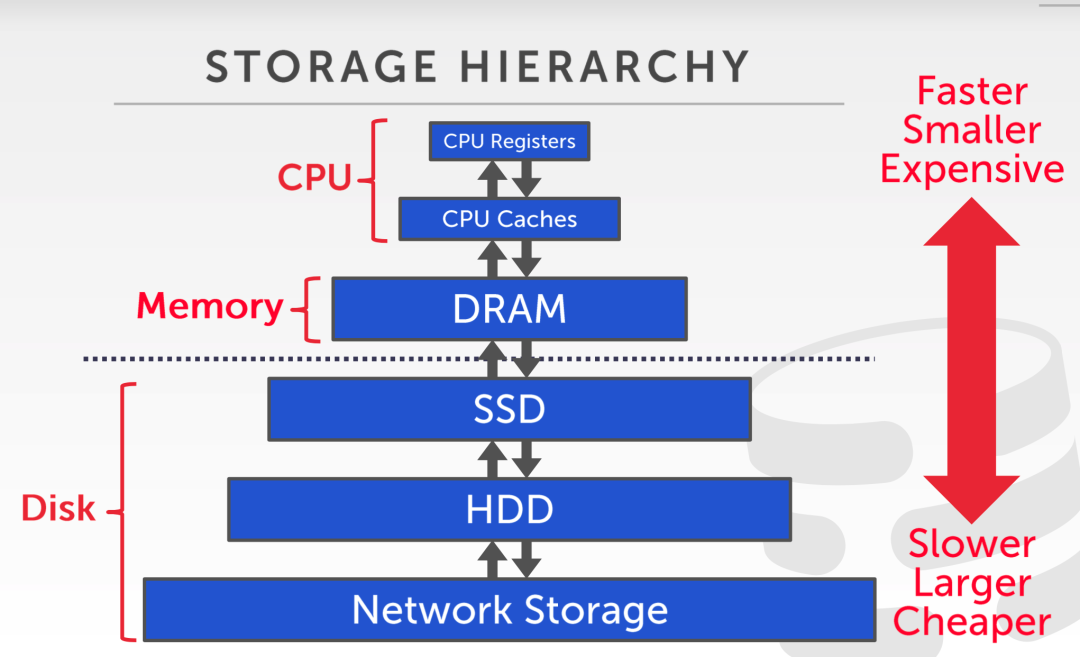存储介质一个数据库系统大致由以下几个不同的学习部分组成: query plan(执行计划)operator execution(执行器)access method(访问方法)buffer pool(缓冲池)disk manager(磁盘管理)以及其他的的一些组成部分,例如并发控制、学习分布式等。学习这个课程系列将会自底向上逐一介绍。学习