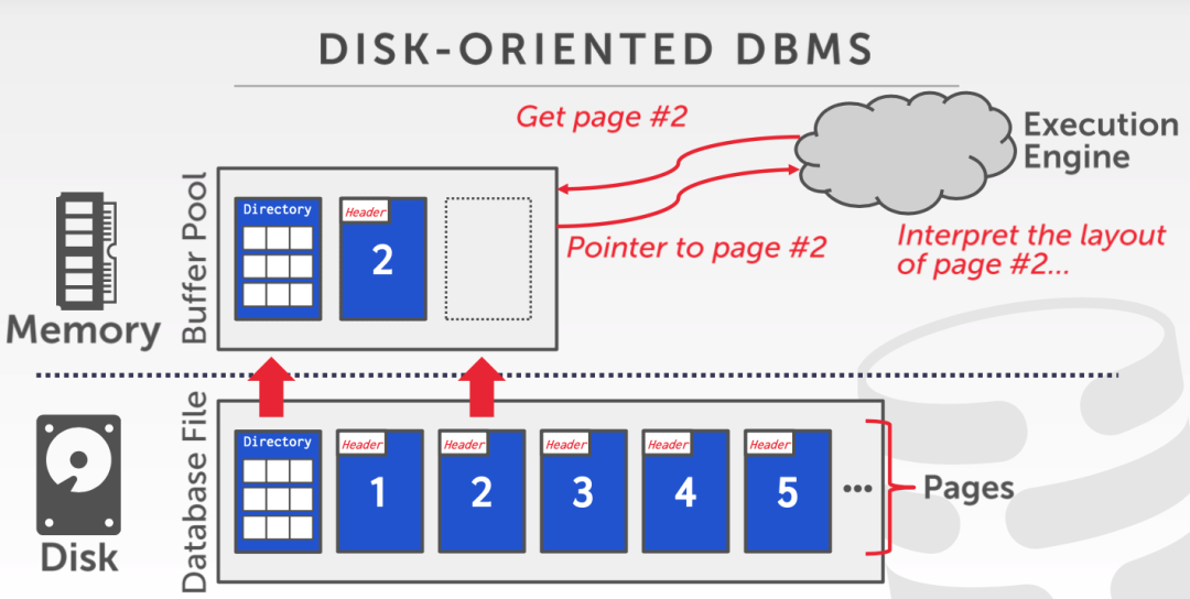 对于磁盘来说,顺序访问也比随机访问更快,因为磁盘的主要时间消耗在于寻道。 数据库系统对于磁盘管理的设计目标,主要是以下几个方面: 能够管理远超过 memory 容量的数据读写磁盘开销巨大,因此需要尽量避免频繁读写磁盘,或者更加高效的读写磁盘,防止 write stall 带来的影响尽量避免随机磁盘 IO数据库中,内存和磁盘的结构和关系大致如下图,磁盘上的数据通常以 page 为单位进行组织,内存中维护了一个缓冲池 buffer pool,缓存了磁盘中的 page。 当上层的执行引擎需要读写数据时,首先从 buffer pool 中获取数据,如果 buffer pool 中没有,网站模板则从磁盘中加载到 buffer pool,然后返回到执行引擎中。