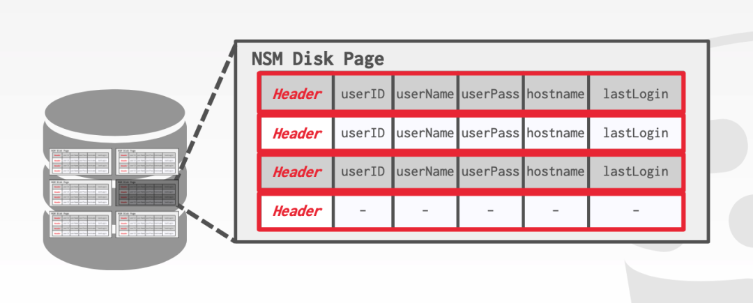 针对这两种不同的 workload,数据库中的数据组织上也有一些区别,分别是以行存和列存为主流。 行存是最常见、符合直观思维的存储模式,将不同属性的数据一行行的组织起来,并且存储到 page 当中。