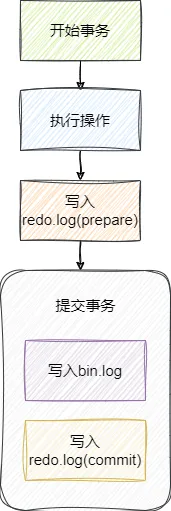 所以MySQL设计者提出了二阶段提交的概念,整体步骤为: 在事务开始时,先写redo-log(prepare)。事务提交时,再写bin log。事务提交成功,再写redo-log(commit)。
