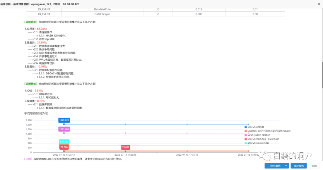 根据数据库中的等待事件,通过智能化诊断算法去做一个初步分析,为运维专家提供一些参考:  图片