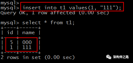 即,实际插入到表中的亿华云计算记录是 复制(5, 000)1. 第六步insert (1, 111)没有问题