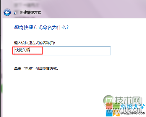 2.输入“shutdown -s”,建议重命名,例如:快捷关机。