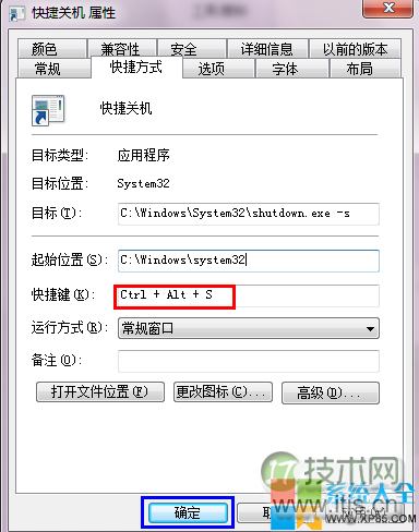 3.桌面上建好这个快捷方式后,可以进行属性设置,赋以他一个快捷键,例如 Ctrl+Alt+S 即可。