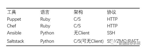 从上图中可以看出,从开发人员写下代码到服务最终用户是一个漫长过程,整体可以分成三个阶段: 从代码(Code)到成品库(Artifact)这个阶段主要对开发人员的代码做持续构建并把构建产生的制品集中管理,是为部署系统准备输入内容的阶段。从制品到可运行服务 这个阶段主要完成制品部署到指定环境,是部署系统的最基本工作内容。从开发环境到最终生产环境 这个阶段主要完成一次变更在不同环境的迁移,是部署系统上线最终服务的核心能力。发布系统集成了制品管理,发布流程,权限控制,线上环境版本变更,灰度发布,线上服务回滚等几方面的内容,是开发人员工作结晶最终呈现的重要通道。开源的项目中没有完全满足的项目,如果只是 Web 类项目,Walle、Piplin 都是可用的,但是功能不太满足,创业初期可以集成 Jenkins + Gitlab + Walle (可以考虑两天时间完善一下),以上方案基本包括 制品管理,发布流程,权限控制,线上环境版本变更,灰度发布(需要自己实现),线上服务回滚等功能。 16、跳板机跳板机面对的是需求是要有一种能满足角色管理与授权审批、信息资源访问控制、操作记录和审计、系统变更和维护控制要求,并生成一些统计报表配合管理规范来不断提升IT内控的合规性,能对运维人员操作行为的进行控制和审计,对误操作、违规操作导致的操作事故,快速定位原因和责任人。其功能模块一般包括:帐户管理、认证管理、授权管理、审计管理等等 开源项目中,Jumpserver 能够实现跳板机常见需求,如授权、用户管理、服务器基本信息记录等,同时又可批量执行脚本等功能;其中录像回放、命令搜索、实时监控等特点,又能帮助运维人员回溯操作历史,方便查找操作痕迹,便于管理其他人员对服务器的操作控制。 17、机器管理机器管理的工具选择的考量可以包含以下三个方面: a. 是否简单,是否需要每台机器部署agent(客户端) b. 语言的选择(puppet/chef vs ansible/saltstack)开源技术,不看官网不足以熟练,不懂源码不足以精通;Puppet、Chef基于Ruby开发,ansible、saltstack基于python开发的 c. 速度的选择(ansiblevssaltstack) ansible基于SSH协议传输数据,Saltstack使用消息队列zeroMQ传输数据;大规模并发的能力对于几十台-200台规模的兄弟来讲,ansible的性能也可接受,如果一次操作上千台,用salt好一些。 如图9所示: 【图9 机器管理软件对比