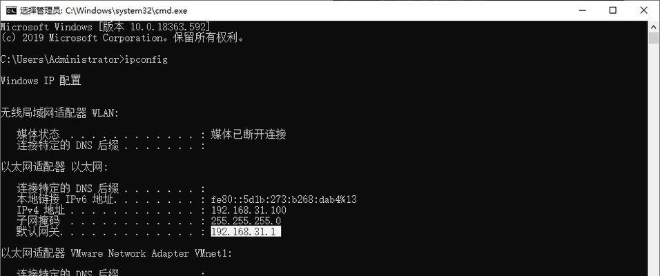 如何打开CMD命令提示符? 要打开CMD命令提示符,可以按下Win键+R键,在弹出窗口中输入“cmd”并点击“确定”按钮。或者在Windows搜索栏中直接输入“cmd”,然后点击“命令提示符”来打开CMD窗口。 运行CMD命令查看IP地址的第一步 在CMD命令提示符中,输入“ipconfig”命令,然后按下回车键。系统将显示当前网络适配器的详细信息,包括IP地址、子网掩码和默认网关等。 理解IP地址的格式 IP地址是一个由四个用点分隔的数字组成的字符串。例如,192.168.0.1是一个常见的IP地址格式。每个数字的取值范围是0到255。