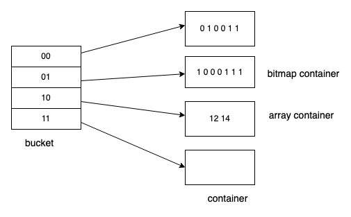 在32位的Roaring bitmap中,前16位用于分桶,该取值范围内没有数据则bucket不会被创建,后16位存在对应的container中。Container有两种类型: Array container: 数据量较少的时候(一般少于8K容量),更省空间Bitmap container 适合存储稠密数据、占用空间小在计算的时候只要对某些bucket中的值进行计算即可。扩展到64位的roaringbitmap的时候,我们可以通过一个map<uint32_t, Roaring>来支持,前32位作为map的key,后32位用roaringbitmap存储。 字典优化在大部分场景中,以上的roaring bitmap已经有很好的性能。但是在字节的实际场景中,我们发现由于user_id 不是连续生成的,array container的数量占比会很高。对两个稀疏人群的交并补操作就变成了对两个有序数组的计算,这种计算对比单纯的位计算,在性能上还是有明显的差异。 因此在ByteHouse中,我们通过字典方式,对数据进行编码,让数据更加集中。 开启字典优化的方式如下: 复制CREATE TABLE id_tags ( tags String, active_users BitMap64 BitEngineEncode ) Engine = CnchMergeTree() order by tags1.2.3.4. 本质上字典服务是个onto映射, 可以通过key 查找value, 也可以通过value反查key, 其中key原始值,value时编码值。开启编码之后,ByteHouse会依赖一个字典文件。在默认情况下,ByteHouse会在内部维护一个字典文件。 当底表更新时,内部字典文件也会随之异步更新。ByteHouse同时也支持用户维护外部字典,这里不做展开。 总结人群分析是画像平台的基础功能,本文介绍了如何利用ByteHouse内置的BitMap类型来支持实时的画像查询分析。目前ByteHouse云数仓以及企业版均已登陆火山引擎。未来,火山引擎将通过 ByteHouse 来为客户持续提供字节跳动和外部最佳实践,构建交互式大数据分析平台,以应对复杂多变的业务需求和高速增长的数据场景。 |