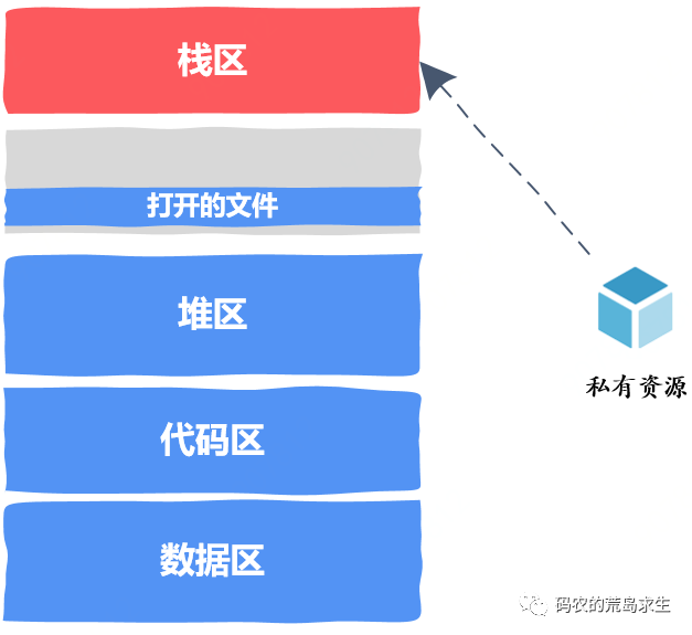 线程私有资源线程都有哪些私有资源呢?啊哈,我们在上一篇《线程到底共享了哪些进程资源》中详细讲解了这个问题。 线程运行的本质其实就是函数的执行,函数的执行总会有一个源头,这个源头就是所谓的入口函数,CPU从入口函数开始执行从而形成一个执行流,只不过我们人为的给执行流起一个名字,这个名字就叫线程。 既然线程运行的本质就是函数的执行,那么函数运行时信息都保存在哪里呢? 答案就是栈区,每个线程都有一个私有的栈区,因此在栈上分配的局部变量就是线程私有的,无论我们怎样使用这些局部变量都不管其它线程屁事。  图片