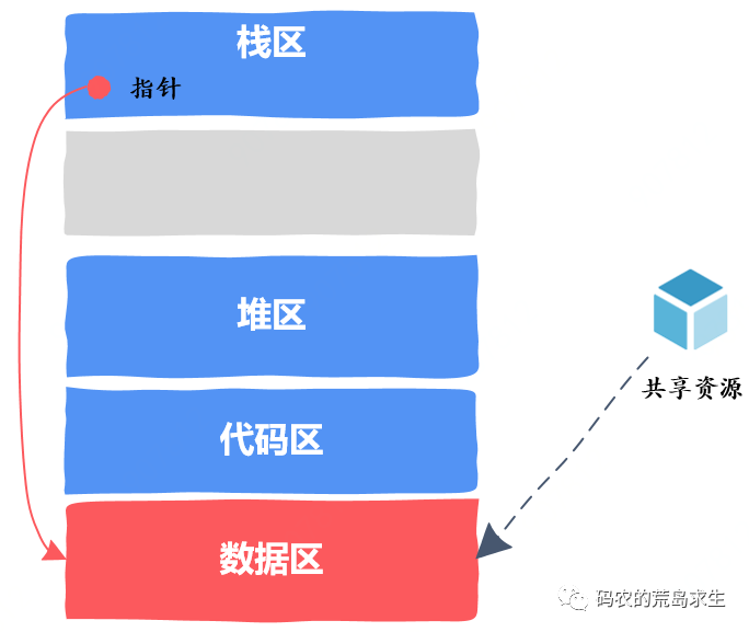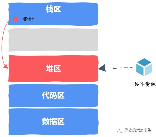 有的同学可能会说如果我传入的不是全局变量的指针(引用)是不是就不会有问题了? 答案依然是it depends,要看情况。 即便我们传入的参数是在堆上(heap)用malloc或new出来的,依然可能会有问题,为什么? 答案很简单,因为堆上的资源也是所有线程可共享的。  图片