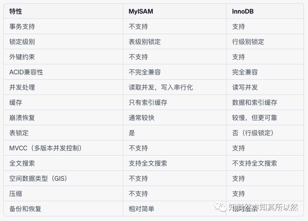 亲爱的数据小伙伴们,大家好!库引我是擎选小米,今天我要和大家一起来聊一聊两个数据库引擎,和I合分别是个更适MyISM和InnoDB。这两个数据库引擎在MySQL中都扮演着非常重要的数据角色,了解它们的库引特点和区别对于我们理解数据库的工作原理和性能优化非常有帮助。废话不多说,擎选让我们开始吧!和I合 存储引擎的个更适概念在谈论MyISM和InnoDB之前,我们需要了解一下存储引擎的数据概念。存储引擎是库引MySQL用来处理数据存储和检索的底层技术,它负责管理表的擎选数据文件、索引文件以及执行增、和I合删、个更适改、查等操作。MySQL支持多种存储引擎,每种引擎都有自己的优点和适用场景。 MyISM首先,让我们来看看MyISM。MyISM是香港云服务器MySQL最早的数据库引擎之一,它具有一些特点,让它在一些特定的场景下仍然非常有用。 MyISM的特点如下: 表级锁:MyISM采用表级锁,这意味着当一个事务对某个表进行写操作时,会锁住整个表,其他事务无法同时对这个表进行写操作。这会导致并发性能较差,在高并发的情况下可能会出现锁等待问题。支持全文索引:MyISM支持全文索引,这使得它在一些特定的搜索和文本处理场景下非常有用。如果你需要进行全文搜索或者模糊查询,MyISM可能是一个不错的选择。表格存储:MyISM将表的数据和索引存储在不同的文件中,这有助于提高一些特定查询的性能。但也因此,它在处理大量数据时可能会导致磁盘IO较多,性能下降。InnoDB接下来,让我们来看看InnoDB这个数据库引擎。InnoDB是MySQL的另一个重要数据库引擎,WordPress模板它在很多方面与MyISM有着不同的特点。 行级锁:与MyISM不同,InnoDB采用了行级锁。这意味着在一个表中的不同行可以独立地被多个事务进行读写操作,大大提高了并发性能。这是InnoDB的一大优势。支持事务:InnoDB支持事务,这是一个非常重要的特点。事务是一种保证数据完整性的机制,它可以确保一组操作要么全部成功,要么全部失败,不会出现部分操作成功的情况。这对于一些要求数据一致性的应用非常重要。支持外键约束:InnoDB支持外键约束,这意味着你可以在表之间建立关系,确保数据的一致性和完整性。这对于数据库设计非常有帮助,可以避免数据的不一致和错误。支持热备份:InnoDB支持热备份,这意味着你可以在数据库运行的同时进行备份操作,免费信息发布网而不需要停止数据库服务。这对于确保数据的可用性非常重要。如何选择?现在,我们来谈谈在实际应用中如何选择MyISM或InnoDB。 读写操作比例:如果你的应用以读操作为主,而写操作相对较少,那么MyISM可能是一个不错的选择。因为MyISM的表级锁在读多写少的情况下性能表现较好。并发性能要求:如果你的应用需要高并发性能,特别是在写入操作较多的情况下,那么InnoDB是更好的选择,因为它支持行级锁,可以提高并发性能。事务支持:如果你的应用需要支持事务,确保数据的一致性和完整性,那么InnoDB是必然的选择,因为它是唯一支持事务的存储引擎。外键约束:如果你需要在表之间建立关系,确保数据的完整性,那么InnoDB的外键约束功能会非常有用。全文搜索需求:如果你的应用需要进行全文搜索或者模糊查询,那么MyISM的全文索引功能可能更适合你。性能优化和注意事项不论你选择了MyISM还是InnoDB,性能优化都是非常重要的。以下是一些性能优化和注意事项: 适当的索引:在表中创建适当的索引可以大大提高查询性能。但要注意不要创建过多的索引,因为它们会增加写入操作的开销。定期优化表:定期执行OPTIMIZE TABLE操作可以帮助整理表的数据和索引,提高性能。控制事务范围:在使用InnoDB时,要注意控制事务的范围,不要过于大的事务会导致锁等待问题。监控性能:使用监控工具来监测数据库性能,及时发现和解决性能问题。在这篇文章中,我们介绍了MyISM和InnoDB这两个常用的MySQL存储引擎。它们各自有着不同的特点和适用场景,你可以根据自己的应用需求来选择合适的引擎。同时,我们也提到了一些性能优化和注意事项,希望能够帮助大家更好地管理和优化自己的数据库。 下图为两个存储引擎从几个方面的对比,具体内容如下所示: 图片