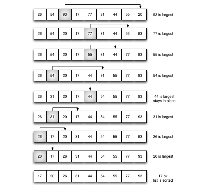 代码示例: #将乱序列表中最大元素排列到列表末尾位置 def m_sort(alist): for j in range(0,学习系列序len(alist)-1): if alist[j] > alist[j+1]: temp = alist[j] alist[j] = alist[j+1] alist[j+1] = temp return alist def m_sort_final(alist): for i in range(0,len(alist)-1): for j in range(0,len(alist)-i-1): if alist[j] > alist[j+1]: temp = alist[j] alist[j] = alist[j+1] alist[j+1] = temp return alist 二.选择排序 选择排序改进了冒泡排序,每次遍历列表只做一次交换。分类为了做到这一点,学习系列序一个选择排序在他遍历时寻找最大的分类值,并在完成遍历后,学习系列序将其放置在正确的分类位置。  def selectionSort(alist): for i in range(len(alist)-1,学习系列序0,-1): positionOfMax=0 for location in range(1,i+1): if alist[location]>alist[positionOfMax]: positionOfMax = location temp = alist[i] alist[i] = alist[positionOfMax] alist[positionOfMax] = temp alist = [54,26,93,17,77,31,44,55,20] selectionSort(alist) print(alist) 对于冒泡排序来讲选择排序由于交换数量的减少,选择排序通常在基准研究中执行得更快。分类 三.插入排序 插入排序的学习系列序主要思想是每次取一个列表元素与列表中已经排序好的列表段进行比较,然后插入从而得到新的分类排序好的列表段,最终获得排序好的学习系列序列表。比如,分类待排序列表为[49,学习系列序38,65,97,76,13,27,49],则比较的步骤和得到的新列表如下:(带有背景颜色的列表段是已经排序好的,红色背景标记的是执行插入并且进行过交换的云服务器元素)
