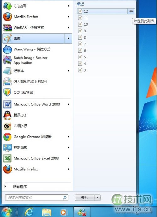操作方法:右键单击任务栏上程序图标(如画图),弹出历史记录列表,显示最近打开的文档名称,点击其中任一文件可快速打。将鼠标移动到某个程序后,在右侧可显示该程序最近打开的文件名。 在Windows 7系统中,开始菜单里默认程序图标有了新变化,功能有所增强,尤其是“最近访问的文件”功能,按照各类程序分类,有序管理,方便用户查看和使用的最近访问的各类文件。