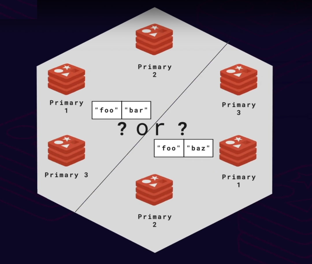 步骤#2: 两侧认为它们具有所有主分片,将继续接收修改数据的客户端请求。这是一个问题,因为也许客户端A在左侧将键foo的值设置为bar,但客户端B在右侧将相同键的服务器托管值设置为baz。