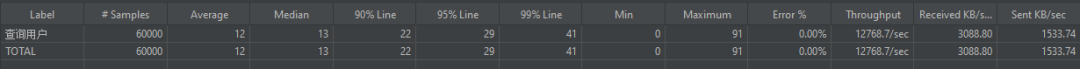 吞吐量平均:13000 测试3,使用只读事务 复制@Transactional(readOnly = true) public User queryUser() {}1.2. JMeter测试结果: 图片