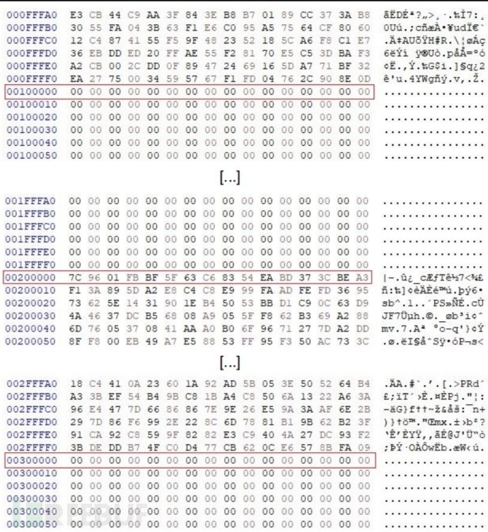 Black Basta 网站 与 P=LAY 勒索软件一样,Black Basta 不具备可配置加密模式。其加密模式为: 如果文件大小小于 704 字节,完全加密如果文件大小小于 4 KB,则从文件开头开始跳过 192 字节并每 64 字节进行加密如果文件大小大于 4 KB,则从文件开头开始跳过 128 字节并每 64 字节进行加密与 P=LAY 勒索软件类似,由于包含空字符,使加密块和未加密块在视觉上更容易区分。