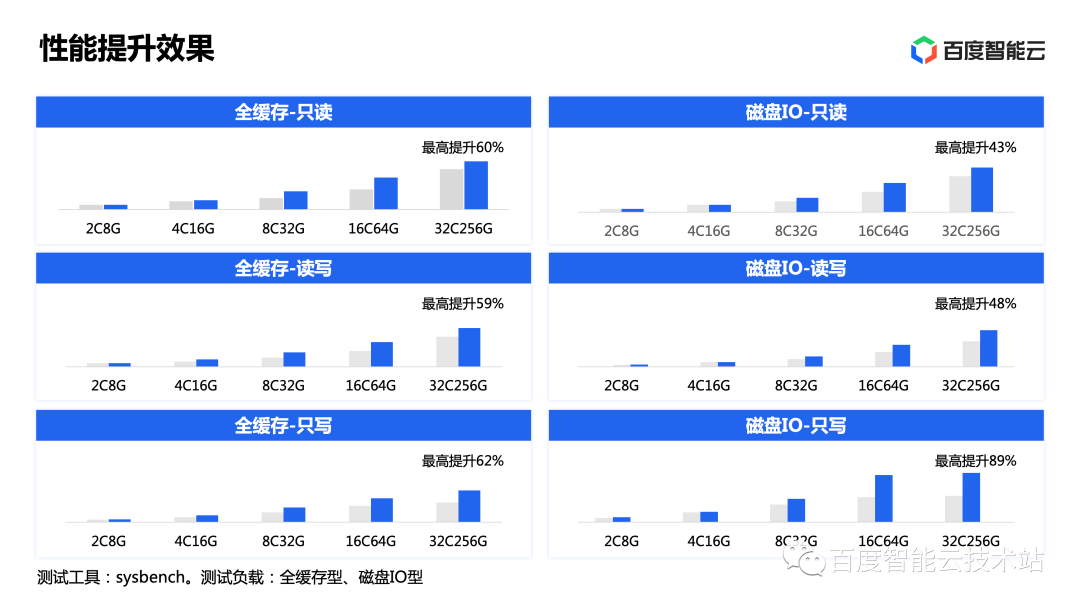 下图中我们可以看到,在综合了多项优化后,读写性能实现了最高 89% 的提升,其中写链路线路提升尤其明显。这些都是在使用普通存储介质和网络环境的情况下测试得出的,主要得益于数据链路的缩短与同步转异步的自适应高吞吐能力。 图片