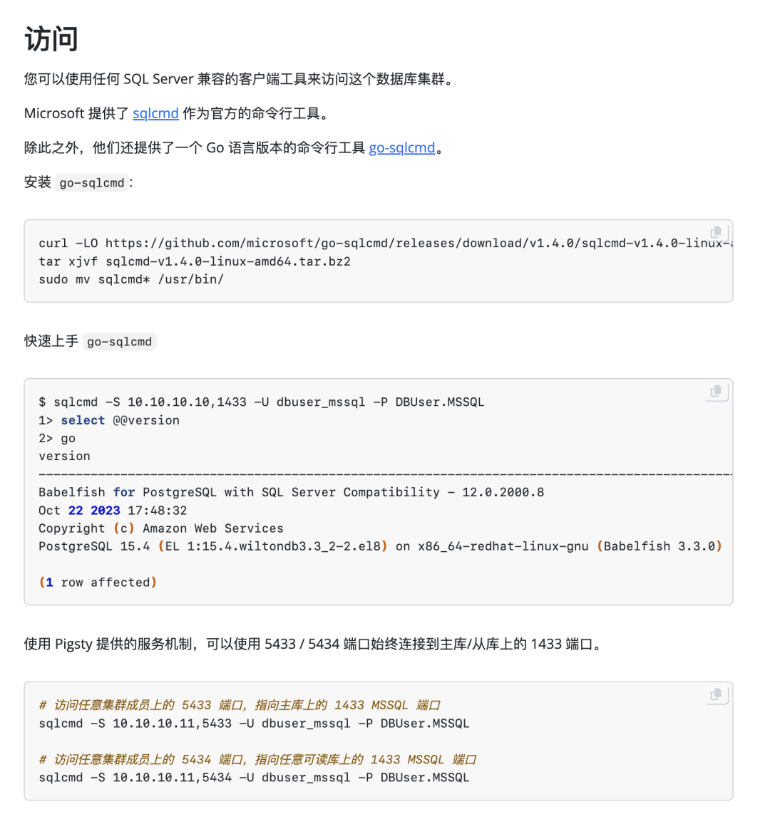 在使用实践上,你完全可以把 Babelfish 集群当作一套普通的 PostgreSQL 集群来使用与管理。唯一的区别就是客户端在使用 5432 PGSQL 协议的b2b供应网基础上,还可以选择是否要使用 1433 端口上的 TSQL 协议支持。 图片
