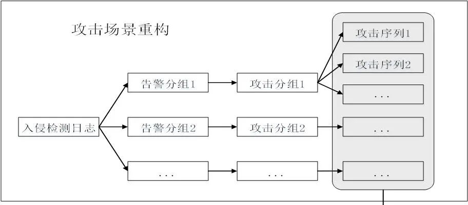 图1 网络攻击预测模型的过程 三、IDS警报处理模块入侵检测系统是网络攻击预测模型的数据来源,假阳性和假阴性是入侵检测技术的关键技术指标。减少告警的假阳性和假阴性是入侵检测系统的重要目标。现代入侵检测系统(IDS)在收集和分析数据上所用的技术及其多样化,大多数都依赖于一个共同的架构: (1) 检测模块收集可能包含入侵迹象的数据; (2) 关联分析引擎处理收集到的数据以确定入侵活动; (3) 响应组件负责记录并报告入侵行为。 几乎所有的现代入侵检测系统都是通过监视主机信息或者网络连接信息来捕获攻击相关的数据。入侵检测可以收集到的数据有:文件系统、网络事件、系统调用。 入侵检测数据被收集以后,IDS就会使用解析引擎对这些数据进行解析,识别入侵行为。站群服务器现代系统主要使用两种技术对入侵检测数据进行解析,分别是误用检测和异常检测。误用检测的本质是基于专家系统预定义的知识库来识别入侵。因此对于出现在知识库中的入侵行为能够达到很高的准确率。由于误用检测系统无法检测到知识库里没有出现的入侵,这种系统的性能很大程度上取决于系统的正确和完整的构建,这是一个传统上需要人类专家的任务。异常检测主要涉及识别与正常系统行为不符的异常行为。异常检测系统首先需要建立一个代表正常系统行为的基准模型,根据这个模型识别异常事件。系统通过特定的阈值判断一个事件是否为异常行为。优点是它能够识别新的以及以前未发现的攻击。 当前IDS型号种类较多,有免费的Snort、TCPdump、Portsentry等,也有商业的Drangon、NFR、RealSecure等入侵检测系统,它们的报警格式和内容各不相同,不便于直接用于攻击场景构建。但是由于IDS设备的封闭性,不同IDS生成的警报信息格式存在较大差异,导致无法实现IDS警报信息的共享。 最近出现了许多新的功能,其中包括入侵检测格式(CIDF)和IETF标准化工作,来提供入侵检测系统中的互操作性。互联网工程任务组(IETF)内部的IDWG(Intrusion Detection Working Group )工作组提出了一种具有较强融合能力的入侵检测消息交换格式IDMEF。这样的框架使得不同的数据收集和分析技术可以被集成到一个系统中,从而提高系统的覆盖范围和冗余度。越来越多的入侵检测系统开始实现这个想法,如EMERALD。在标准的框架被广泛使用之前还需要一段时间,入侵检测系统的标准格式还有待进一步研究。 四、攻击场景构建模块4.1 警报关联技术警报关联技术是构建攻击场景的主要理论依据,而攻击场景重构是构建网络攻击预测模型的重要组成部分[2]。网络入侵检测系统(NIDS)的存在是任何现代安全体系结构的基石。典型的NIDS分析网络流量,并在检测到恶意网络数据包后立即生成安全警报。警报分析由安全专家手动执行,安全专家负责解析NIDS日志以识别相关警报以及它们之间可能的因果关系。 警报关联系统把不同的警报关联到一起。有时告警数量太多以至于手动分析是不可能的,关联引擎把大量信息减少到可以关联的程度。另外,警报关联系统可以从整体和抽象的角度来识别恶意活动,而不是单独分析每个警报。换句话说,警报关联系统是一个接收来自各种异构系统的事件,减少所需的评估信息,删除错误的警报,并检测高层次的攻击模式的系统。 警报关联算法根据其特征可以分为三类,分别为基于相似性、基于知识和基于统计的方式。其中基于相似性和基于统计的算法只需要较少的上下文信息,只能基于警报特征和之前学到的信息之间的相似性进行关联。基于知识的算法完基于警报含义进行。 4.2 构建复合攻击场景IDS日志是一系列报警事件的集合,这些报警事件来自于多个攻击序列。依据IDS报警之间的内在联系,将IDS日志划分为多个IP相关报警序列。然后在每个IP相关报警序列中提取攻击事件。最后根据攻击事件发生时间进行排序构成攻击序列。 攻击场景重构部分接收入侵检测系统(IDS)传入的IDS日志。首先通过IP相关报警序列划分算法,把IDS日志划分到多个告警分组。然后在每个告警分组之内应用提取攻击事件算法,把多个告警分组转化为多个攻击分组。最后通过抽取构建序列算法,把每个攻击分组转化为一个或多个攻击序列。构建复合攻击场景的流程如图2所示。
