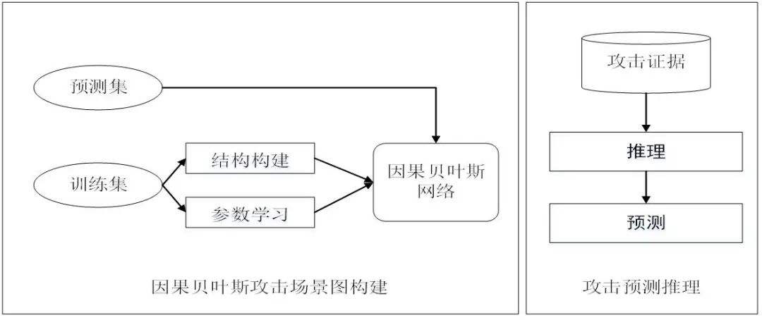 图4 贝叶斯网络的攻击预测模型整体流程 贝叶斯网络攻击预测方法主要包括两个处理流程:因果贝叶斯攻击场景图的构建和攻击预测推理。 (1) 因果贝叶斯攻击场景图的构建 因果贝叶斯攻击场景图构建的基础是结构构建和参数学习,其中因果贝叶斯攻击场景图结构构建的依据是攻击间的因果关系关联规则。 (2) 攻击预测推理 对加入攻击证据的因果贝叶斯攻击场景图进行参数概率推理,得到该攻击证据的直接节点与间接节点概率值,通过概率计算来预测下一步发生的攻击及其最终攻击意图。 五、总结针对入侵检测系统很难识别攻击场景、不能预测下一步入侵的问题,本文对网络攻击预测进行了探究。根据当前网络中已经存在的网络状态进行深入分析,判断出在当前网络状态下下一阶段的网络状态,再结合特定的数学模型对未来的行为进行模拟与预判。建立网络攻击预测模型有很多种方法,本文对常用的神经网络和贝叶斯网络模型的整体流程进行了梳理。 参考文献 [1] 樊迪,刘静,庄俊玺,赖英旭.基于因果知识发现的攻击场景重构研究[J].网络与信息安全学报,2017,3(04):58-68. [2] 黄强,鲁学仲,运凯,李浩升,赵梅,康婉晴.基于多源告警信息关联的网路安全技防技术[J].信息安全研究,2021,7(11):1041-1046. [3] 于泳.基于深度学习的多步网络攻击预测模型的设计与实现.北京邮电大学. [4] Rezende,D. J.; Eslami, S. A.; Mohamed, S.; Battaglia, P.; Jaderberg, M.; and Heess, N.2016. Unsupervised learning of 3d structure from images. In Advances In NeuralInformation Processing Systems, 4997–5005. [5] 刘博文, 刘建毅, 张茹. 基于神经网络和贝叶斯网络攻击图的多步攻击场景挖掘研究[J]. 2019. |
