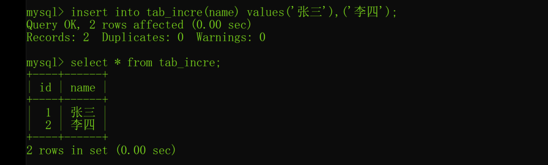 从上述结果可以看出自增列默认值为 1,每次递增 1。突击