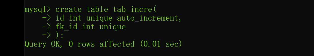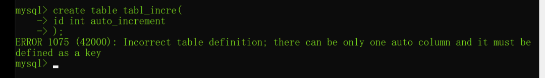 (2)必须配合 key 一起使用auto_increment 必须配合 key 一起使用,这个 key 可以是 primary key 或 foreign key,如果没有 key 就会报错,如下所示: