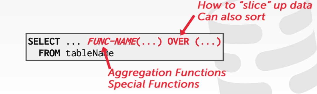 在 inner query 之前可以加上一个条件匹配表达式,大致有如下几种: ALL:表示必须满足 inner query 中的所有条件ANY:表示满足 inner query 中任意一条数据IN:等同于 ANYEXISTS:inner query 中有一条数据返回即可exists 前面可以加 not 表示否,例如下面 sql 的含义是查找在 enrolled 中没有 course 记录的数据。 复制select * from course where not exists (select * from enrolled where course.cid = enrolled.cid);1. Window Function窗口函数可以对一系列与当前行有关联的行进行计算,常见的窗口函数语法如下: