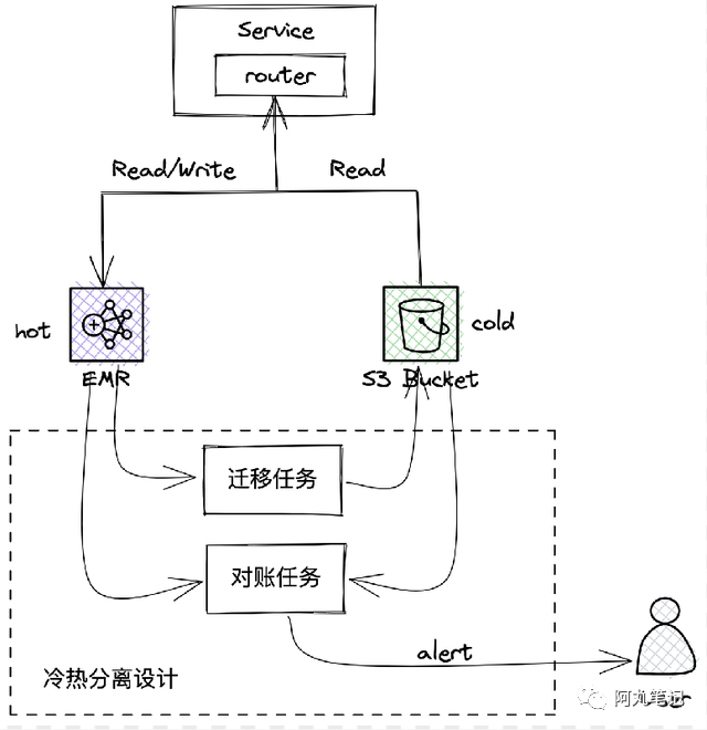 在多副本灾备架构下,可以对主备集群内数据都调整为两副本(去掉replica3、replica6),整体变为四副本,可以降低30%的磁盘空间使用。 某业务团队单副本140T数据,六副本840T,磁盘使用率不断上涨,造成巨大成本压力。我们通过调整副本数量为四副本(从原来的六副本),有效降低了280T数据的磁盘使用空间。 数据冷热分离如果数据量过大,一般可以考虑根据数据生命周期特点,实施冷热分离、无效数据清理。