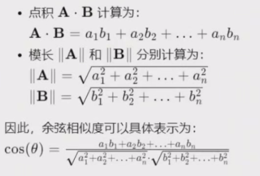 余弦相似度对向量的长度不敏感,只关注向量的方向,因此适用于高维向量的相似性计算。例如语义搜索和文档分类。 余弦相似度的范围从-1到1,其中1表示完全相同的方向(完全相似),0表示正交(完全不相似),-1表示完全相反的方向(完全不相似)。 (3)点积相似度(Dot product similarity)点积相似度(Dot Product Similarity),也称为向量内积相似度,是一种衡量两个向量之间相似度的方法。 它通过计算两个向量的点积来评估它们之间的相似性。 定义对于两个向量 A 和 B,点积相似度定义为: Dot Product Similarity =A · B 其中,点积 A · B 计算为: 图片 计算公式如果点积结果为正数,表示两个向量之间存在正相关性,即它们在某种程度上是相似的。如果点积结果为负数,表示两个向量之间存在负相关性,即它们在某种程度上是相反的。如果点积结果为零,表示两个向量之间没有线性相关性。 特点 无归一化:点积相似度没有进行归一化处理,因此它对向量的长度敏感,这意味着如果两个向量的长度不同,即使它们的方向相同,它们的点积也可能不同。范围:点积的值可以是正的、负的或零,取决于向量之间的相对方向,正点积表示向量之间的角度接近0度,负点积表示向量之间的角度接近180度,而零点积表示向量正交。与余弦相似度比较点积相似度与余弦相似度的主要区别在于: 点积相似度:对向量的长度敏感,没有归一化。余弦相似度:对向量的长度不敏感,因为已经通过模长进行了归一化。2、相似性搜索(Similarity Search)对于向量搜索,通过比较向量之间的距离来判断它们的相似度。 想要在一个海量的数据中找到和某个向量最相似的向量,需要对数据库中的每个向量进行一次比较计算,计算量非常巨大。 高效的搜索算法有很多,其主要思想是通过两种方式提高搜索效率:减少向量大小——通过降维或减少表示向量值的长度。缩小搜索范围——可以通过聚类或将向量组织成基于树形、图形结构来实现,并限制搜索范围仅在最接近的族中进行,或者通过最相似的分支进行过滤。 大部分算法共有的核心概念,也就是聚类。 (1)K-MeansK-means算法的核心思想是将数据划分为K个独立的簇(cluster)。 使得每个簇内的数据点距离尽可能小。而簇与旗之间的距离尽可能大。下面是K-means算法的具体步骤: 1.初始化:选择K个数据点作为初始质心(centroid),这些质心可以是随机选择的,也可以是通过其他方法选定的。2.分配:将每个数据点分配到离它最近的质心所代表的簇中。3.更新:重新计算每个族的质心,方法是将簇内所有数据点的均值作为新的质心。4.重复步骤2和3,直到质心不再发生显著变化或达到迭代次数上限。 选择了三个初始质点: 图片