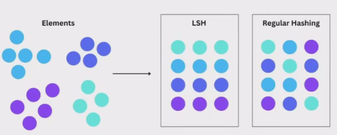HNSW 继承了相同的分层格式,最高层具有更长的边缘(用于快速搜索),而较低层具有较短的边缘(用于准确搜索)。 具体来说,可以将图分为多层,每一层都是一个小世界,图中的节点都是相互连接的。 而且每一层的节点都会连接到上一层的节点,当需要搜索的时候,就可以从最上层开始,因为最上层的节点之间距离很长,可以减少搜索的时间,然后再逐层向下搜索,又因为最下层相似节点之间相互关联,所以可以保证搜索的质量,能够找到最相似的向量。 HNSW 算法是一种经典的空间换时间的算法,它的搜索质量和搜索速度都比较高,但是它的内存开销也比较大,因为不仅需要将所有的向量都存储在内存中,还需要维护一个图的结构,也同样需要存储。所以这类算法需要根据实际的场景来选择。 (3)局部敏感哈希(LSH)局部敏感哈希(Locality Sensitive Hashing,LSH)也是一种使用近似最近邻搜索的索引技术。它的特点是快速,同时仍然提供一个近似、非穷举的结果。 LSH 使用一组哈希函教将相似向量映射到“桶”中,从而使相似向量具有相同的哈希值,这样,就可以通过比较哈希值来判断向量之间的相似度。 图片