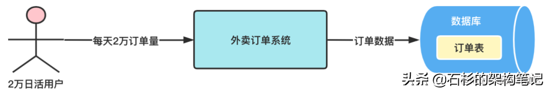 简单估算一下,一年的订单数据量也就七八百万的样子,单个数据库还是非常轻松抗住的。 索引和sql优化 但创业型公司的发展是比较迅猛的,如果踩对风口的话,用户会呈现爆发式的增长,这个时候外卖APP的用户量可能会迅速增长到了100万,日活用户20万,日订单20万,订单单表也从之前的几百万快速达到了2000万的级别,如下图: