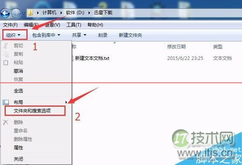2、设置实现搜索进入到我的电脑页面之后,点击“组织”,之后选择“文件夹和搜索选项”。如下图所示。网站模板