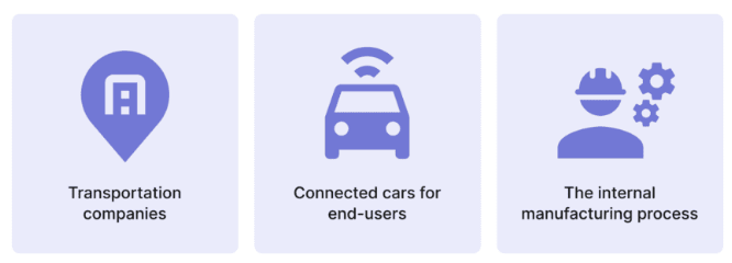 资料来源:PSA 无论系统类型如何,物联网车辆的生产都应具备强大的车载计算能力,能够支持 3 个主要领域:远程信息处理、环境连接和信息娱乐。 运输公司的汽车物联网解决方案在物流方面,可以特别有效地利用物联网解决方案的潜力。使用物联网解决方案,运输公司可以实时接收有关车辆和货物、驾驶员健康和环境条件的所有信息。运输公司可以从实施物联网解决方案中获得以下好处: (1) 有效的车队管理。 通过为车辆配备物联网传感器,可以轻松监控燃油油位、轮胎压力、当前位置、驾驶方式和其他一些参数,以分析其效率。通过实时跟踪车辆,该公司还可以更好地控制运输过程并降低驾驶员的风险。此外,拥有有关车辆的最新信息可以更轻松地遵守所有安全和环境法规。 (2) 预测性维护。使用传感器从车辆收集数据有助于预测可能的故障。例如,当一台设备开始破裂,并开始出现异常噪音或振动时,这表明故障可能很快就会发生。通过避免突发故障,公司还可以避免随之而来的利润损失和声誉风险。顺便说一句,车辆每天的停机时间通常至少要花费 450 到 750 美元。预测性维护技术与机器学习算法密切相关,可以提供更准确的车辆故障预测。 (3) 最优路线规划。 通过访问互联网并与其他司机或道路基础设施连接,公司可以获得最佳方向,避免事故、交通拥堵、不愉快的天气条件和慢速模式。实时互联网接入可以在司机、经理和客户之间提供快速连接,以及在出现问题时立即纠正路线的可能性。 (4) 实际货物状态。 通过为货物和车辆配备传感器,该公司可以监测环境条件以控制温度、湿度和其他参数以保护货物。监控易碎货物以获取适当的条件以提供坠落保护变得更加容易。 (5) 驾驶员状态监控。 利用物联网汽车解决方案可以提供有关驾驶风格的知识和见解,并可以主动识别激进的驾驶模式。如果驾驶员突然移动、急剧加速或减速,这会对汽车的状况和驾驶员的健康产生不利影响。传感器还可以跟踪驾驶方式的低效率,例如过度怠速,并立即发出警告。如果驾驶员被迫在艰苦的条件下工作,例如长途或恶劣的天气条件,可以为他们提供可穿戴设备来实时测量他们的健康状况。 由于更高的透明度,已实施物联网解决方案的物流和运输公司对客户更具吸引力。公司可以为他们的客户提供有限的系统访问权限,让他们自己查看所有流程,并在出现问题时收到通知。 面向最终用户的汽车物联网解决方案据麦肯锡称,早在 2014 年,35 岁以下的购车者中有 65% 将网络连接视为选择汽车的重要因素。 该细分市场还将娱乐称为汽车的主要功能。 现在千禧一代的购买力已经增强,因此,联网汽车的作用更加重要。 例如,仅在 2020 年,联网汽车销量就超过 1300 万辆,占所有汽车销量的 91% 以上。 汽车市场上最大的参与者正在大力投资联网汽车。 难怪此类汽车为驾驶员提供了大量与其智能手机相关的服务和应用程序。网联汽车可以为驾驶员改善以下功能: 信息娱乐安全导航诊断和效率付款我们将娱乐确定为主要功能,因为这是千禧一代买家所说的。另一个重要特点是可以控制汽车的距离。它涉及一些功能,例如狭窄空间的远程停车,关闭和打开车门,发动机启动和停止,气候控制等。由于与汽车的快速通信,驾驶员的响应时间和反应也减少了。在汽车被盗的情况下,由于实时位置监控,很容易找到。配备各种传感器以跟踪可能出现的问题的联网汽车可以在需要访问服务站时直接向驾驶员发送消息。在联网车辆中支付道路通行费也变得更加方便。 联网车辆使用本地环境并与基于云的平台进行通信。这些类型的汽车可以连接到: 基础设施。在该系统中,驾驶员通过无线连接从基础设施对象获取信息,例如交通信号灯、路牌、车道标记、停车场、学区和十字路口。这些数据允许获得最佳路线,允许交通拥堵、恶劣的天气条件、速度限制、事故等。另一辆车。与其他司机共享信息使他们能够获得有关交通的更详细数据。所有连接到互联网的道路使用者都可以相互“交谈”重要数据,从而使驾驶更安全。这对于自动驾驶汽车尤其有价值。云。云提供了很好的机会来存储大量数据以供进一步分析。它可以帮助汽车获取更新、识别问题并与任何物联网设备连接。行人。嵌入式传感器还可以帮助驾驶员检测路上的行人和骑自行车的人。这种改进的安全系统使其能够防止交通事故。当联网汽车结合了之前所有类型的连接时,它被称为车联网连接,或 V2X。大多数大公司目前正在投资的正是这个方向的发展。 用于制造过程的汽车物联网解决方案汽车制造商的主要因素是更多地了解他们的开发、车辆健康、使用寿命驾驶行为、电动汽车充电模式以及改进它们的强弱方面。联网车辆还可以将所有这些信息发送给制造公司,并可用于分析用户体验。它是通过物联网传感器、大数据和云计算等技术的结合提供的。借助有关车辆使用模式的信息,公司可以制定更明智的业务战略,以帮助增加销售额。因此,可以在设计阶段考虑用户问题。这有助于公司在开发汽车生产时提高性能并降低不必要的成本。 公司可以在制造过程的任何阶段使用工业物联网解决方案,将工厂转变为工厂 4.0。通过优化公司内部的生产流程,公司可以节省资金并提供更实惠的产品。 总结连接的设备继续改变我们的