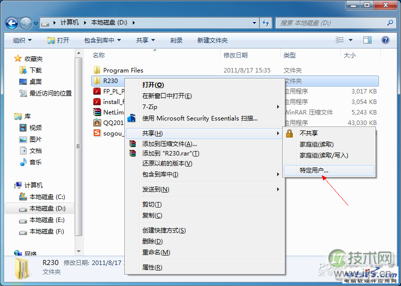 6.找到想要共享的开通文件夹,按照(图6)的局域件共步骤进行。
