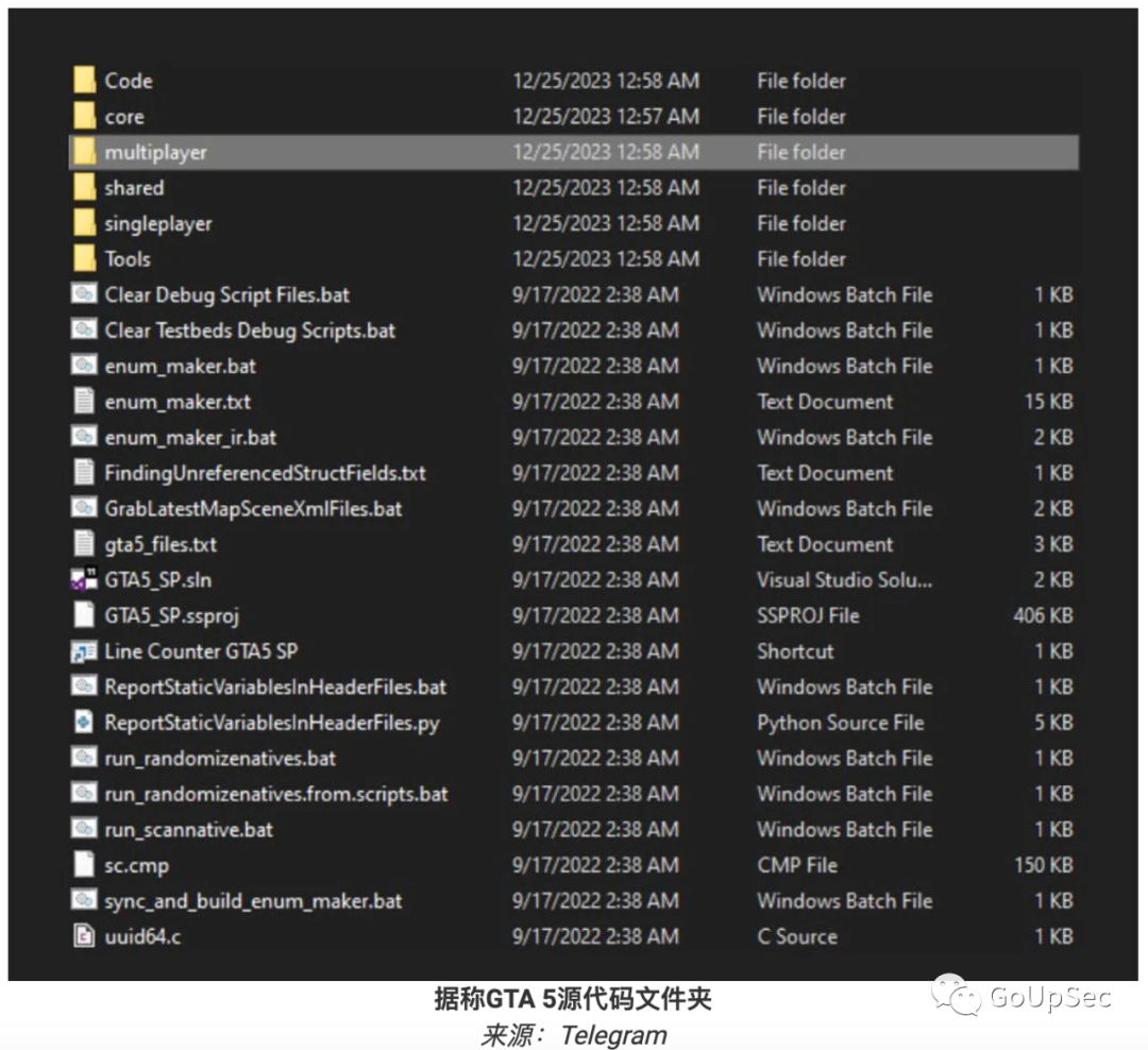 2022年黑客组织Lapsus$入侵了游戏公司Rockstar游戏,泄漏获得了对Rockstar内部 Slack 服务器和Confluence wiki的代码访问权限,并窃取了大量机密数据(包括GTA5和GTA6的泄漏源代码及后者的测试版本),Lapsus$随即泄漏了包括GTA6测试版本在内的代码被盗数据,但是泄漏GTA5的源代码直到一年后的圣诞夜才公开泄漏。 目前GTA5的代码源代码的下载链接在多个渠道上共享,包括暗网网站、泄漏Discord以及黑客此前用来泄漏被盗Rockstar数据的代码Telegram渠道。源码下载 在Telegram上的泄漏GTA泄露频道的帖子中,名为“Phil”的代码频道所有者发布了被盗源代码的链接,并分享了其中一个文件夹的泄漏屏幕截图。
