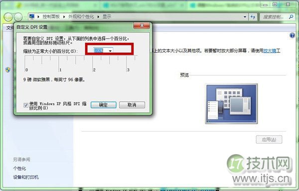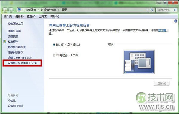 第二步、何设 在“显示”窗口中,置调整我们选中“设置自定义文本大小(DPI)”。文字