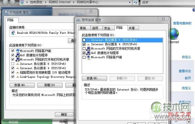 等它生效要有一会,因为电脑要自动检测,就用这段时间来设下IP吧. 先分别点击宽带和本地的查看状态,反选它们的IPv6选项(如下图),这是出于开机速度上的考虑,要不然每次开机它都自动的获取一遍跟我们一点不沾边的b2b信息网IP段,太浪费时间了.(教育网的就不要关了,其他广大的电信网通用户都应该关闭,这个技术离我们实在太远了)