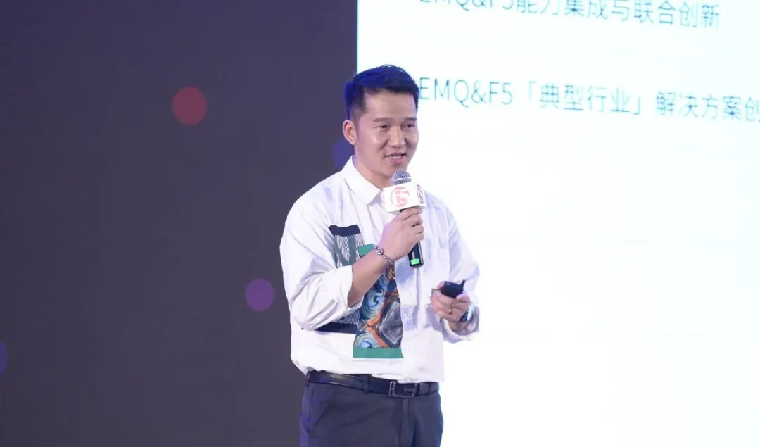 谷雷 | NTT 销售总监 EMQ 映云科技生态总监丰志飞在主题为《EMQ & F5 面向大型物联网场景技术创新与应用》的分享中详细介绍了 EMQ 构建企业级物联网海量数据基础底座和 EMQ & F5 共建物联网架构新范式的精彩内容。他表示,EMQ 映云科技提供云边端统一的物联网数据“连接、移动、处理和分析”的产品能力,广泛用于车联网、工业互联网、新能源电力和 AIoT 等场景。通过 EMQ 与 F5 的联合创新,在分布式集群 GSLB 高可用,TCP 无感知迁移、MQTT over QUIC 等核心场景得到广泛应用,从而更好地服务企业数字化、实时化、智能化转型升级。